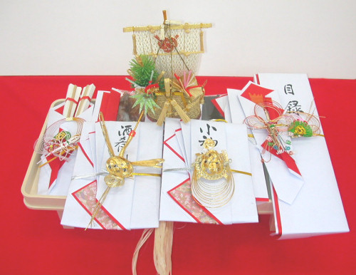 品数 7品(目録・熨斗・小袖料・酒肴料・子婦生・友白髪・寿留女・寿恵広・結美和)