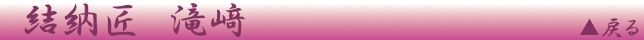 ◆結納匠 滝崎 ◆結納品のお品 ◆結納の取り交わし方 ◆結納の服装、次第 ◆結納品ご案内 ◆羽子板、祝儀用品 ◆父母息娘 ◆Q&A ◆ご協力式場・掲載広告 |